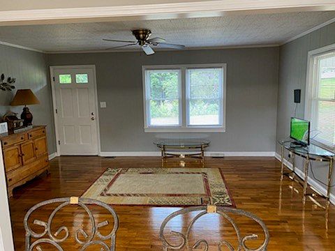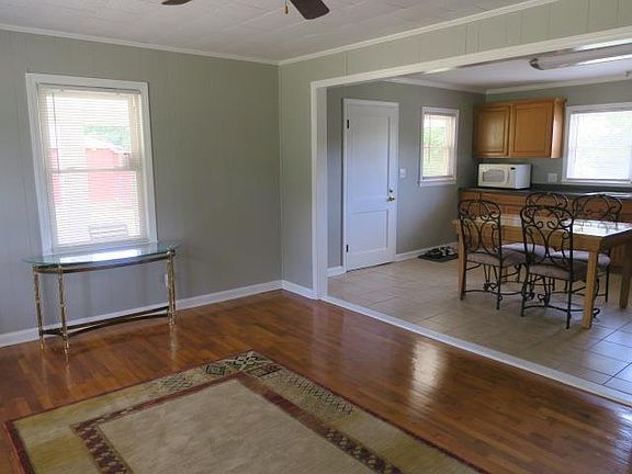 Well maintained vinyl sided ranch style with outside storage buildings and a Quonset. Hardwood floors and ceramic tile in kitchen and bath, double pane windows, eat in kitchen. Most of the acreage is cleared and creek at the back of the property. Also has a porch on the side of the home. Property being sold "as is ~ where is". Sq ft and acres estimated. MUST SEE !