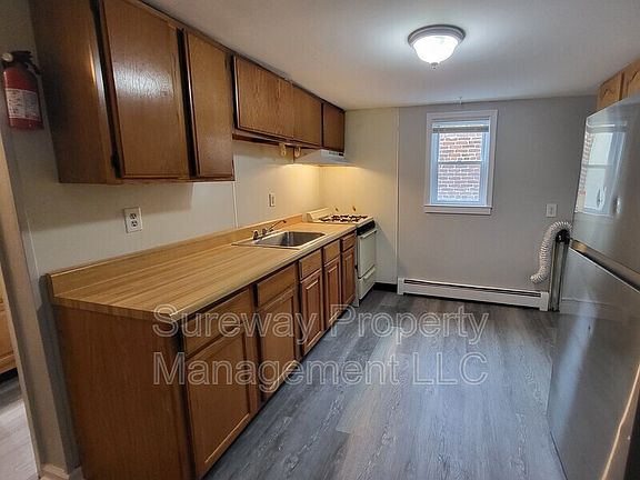 Freshly painted first floor apartment. Three steps to the front door and only one Half-Step to enter the Hall. Two Bedrooms and One Bathroom. Kitchen with a Washer and Dryer hook-up. There is new flooring in the kitchen, bathroom, and to the backdoor. The hall, bedrooms, and living room are carpeted. Access to your backyard has a new screen door. Tenants are responsible for landscaping/maintenance.