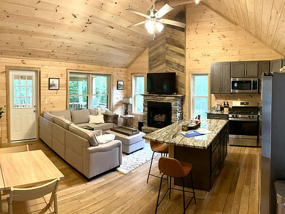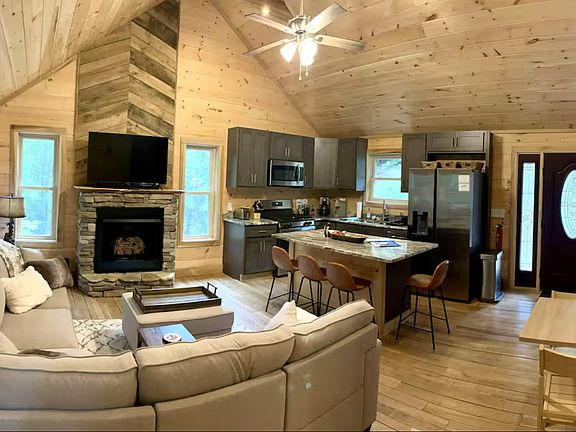 Fully furnished, this new home has everything you might need and more to spend a few months tucked away in a private mountain cabin on Beech Mountain, NC! Offering month-to-month lease terms from March - October 2025. On the main level you will find an open concept kitchen, spacious family room with a smart TV and fireplace, access to the outdoor deck as well as the master bedroom with a king size bed and full bathroom. Downstairs features a second family room with smart TV, full bathroom, access to the lower deck and two additional bedrooms. The second bedroom has a full size bed and the third bedroom has a full size bed with a trundle bed to pull out for extra sleeping space. This is a mid-term rental agreement, fully Furnished, utilities included. Month-to-month lease options available.
