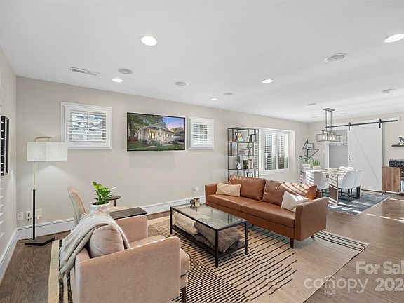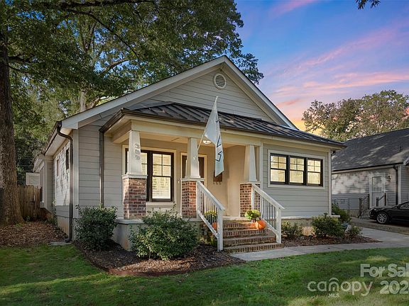 Welcome home to sought after Lockwood! Optimist Hall, Camp North End (the newest home to Google offices, among many vendors/retail/restaurants and routine events!), the Blue Line, and much more just minutes away - not to mention only minutes from Uptown and NoDa! This renovated and lovingly maintained arts and crafts bungalow invites you in with a covered front porch, open floor plan and ample natural light, cozy built-in breakfast nook with storage, and two bedrooms with two full bathrooms. Relax or entertain in your large fenced backyard with multiple outdoor seating options and fire pit! This property includes a whole-home sound system, refrigerator, 2021 washer and dryer, tons of storage and spacious storage shed outside. Recent updates include new (2024) hot water tank, 2022 full hall bathroom renovation, along with fresh paint touchups throughout. The formal dining area was previously a 3rd bedroom/flex room/office and can be converted back. This home is ready for its new owners!