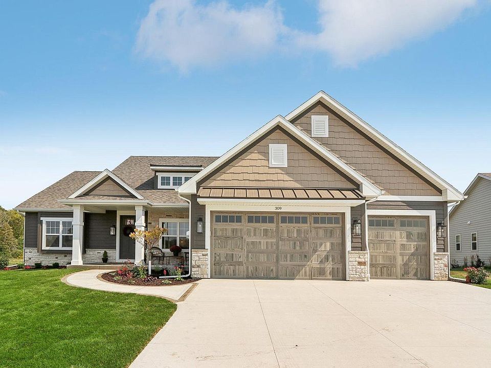 The Kimberly model is a 2224 sq. ft. ranch located in the very desirable Canopy Hills in Union Grove on a spectacular lookout basement lot with pond views! This award-winning ranch has 3 beds, 2.5 baths, & a 3-car garage. This craftsman-inspired home features striking metal roof accents, a dormer and an inviting front porch. There is a convenient flex room just off the entry. Stepping into the home, you will focus on the continuous wide plank LVP flooring. The great room boasts a fireplace w/ stone to the ceiling. The kitchen has maple cabinets to the ceiling, oversized island & striking tumbled marble backsplash. The primary bedroom features tall ceilings & ensuite with split master sinks, and ceramic tile shower. Upgraded appliances included and is fully-landscaped!