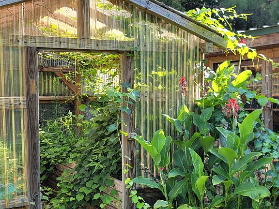 Situated on three secluded acres with a tranquil pond, enjoy ambling around the property among the birds, butterflies, and my favorite, the humming birds!