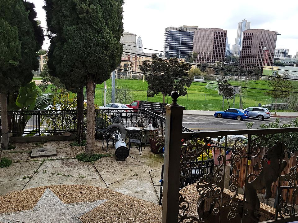 Hardwood flooring with detached kitchen facility. Driveway to fit 4+ vehicles, Site fenced & very private. Sky line of DTLA at subzero level and proximity to metro dining, concert entertainment, plus ideal jogging turf. The interior is very comfortable and roomy space. Front yard has ample space for Week End BBQ surrounded by Italian pine trees and bougainvillea decor container garden. Tenants pay all utilities. No roofing Atenas. M2M rental only. NO LEASE.