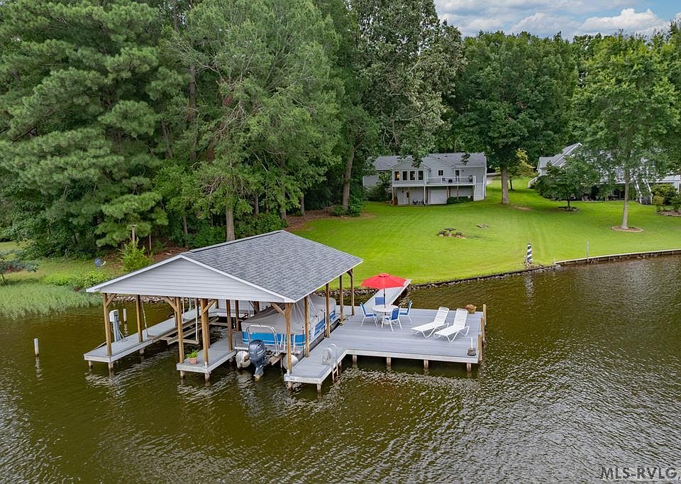 Imagine waking up to beautiful water views and spending the day floating in a wide, quiet cove—no main lake traffic, no big waves, just peaceful swimming and relaxing with family and friends. That's the lifestyle this well-maintained Lake Gaston home offers. With 3 bedrooms and 3 full baths, there's room for everyone to gather. The sunroom overlooking the water is the perfect spot for morning coffee, puzzles, or curling up with a book, while the lower-level rec room with its own small kitchen makes game nights and weekend entertaining a breeze. Step outside and enjoy the gently sloping grassy yard, ideal for yard games, cookouts, or simply watching the kids run down to the water. At the shoreline, the double boathouse—updated in 2019 with composite decking, new roof, and fresh siding—is ready for long days of boating, fishing, or sunset cruises. Located in an established neighborhood with paved roads and just minutes from Littleton, you'll be close to all the new local favorites—an upscale restaurant, theatre, brewery, and more. A main level carport and attached garage provide convenient everyday parking, while the waterside lower-level attached garage offers even more storage and a great opportunity for future expansion. This home is wired for a generator and features a new gas pak in 2018 & new roof in 2019, providing comfort and peace of mind. Ask your Realtor for a list of additional upgrades and information. Whether it's lazy summer days, cozy fall weekends, or festive holiday gatherings, this home is made for creating memories at the lake.