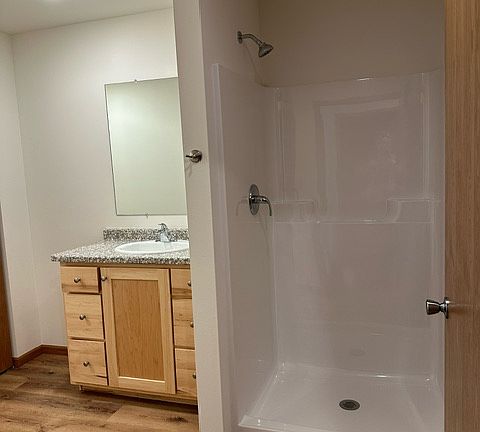 The Creek Ridge Apartments has a modern 2 bed/2 bath upper LMI apartment that will be ready to rent in December! Creek Ridge has a modern touch with private entry into your apartment, in-floor radiant heating and a washer and dryer in all units. With custom-made Amish cabinets and stainless-steel appliances, the kitchen is sure to win your heart. Included in the monthly rent price is the in-floor heating, detached garage, garbage, and recycling.