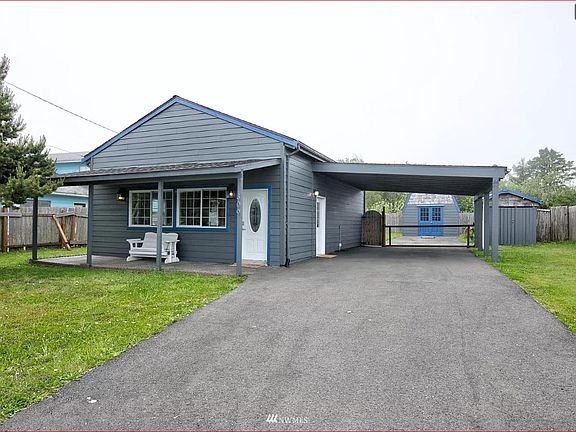 Huge potential at this price in Ocean Shores. House, two detached buildings. A 16 X 10 casita, tool shop, and storage. Large yard for gatherings, tenting, and family BBQ. 50K remodel 2022. The location is halfway between downtown and Getty and Damon Beach. Walking distance to Butterclam dog free beach! Many years of gathering with family and friends at 'the cabin'. Fully fenced with concrete patio. 2 bedrooms on main floor & loft bedroom. Covered Carport (paved from st); stay dry while unloading. Quiet street next to the canals~great for walking your favorite pet, jogging, or biking.