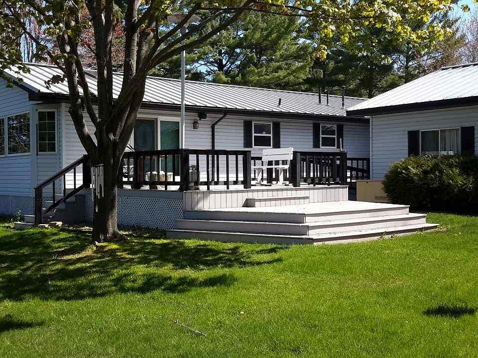 Enjoy the quiet setting along 148' of the Tawas River with its recently installed seawall, on the massive trex type deck that fronts this two bedroom, two bath 1550 sq ft home with 3 car garage, central air & a master bath walk-in tub. A generator will provide power if need be & an under ground sprinkler will keep your plants, shrubs & trees looking healthy. An underground fence keeps Fido within the yard. A 20 x 40 extra high 3 car pole barn keeps the travel trailer safe from the elements, with a loft to store additional possessions. A separate driveway for your RV has 30 amp service. The home & garages have a security system, a metal roof, corian counters in both the kitchen & baths. All this comes with 5-63 ft wide lots across the street. This home is one you don't want to pass on.