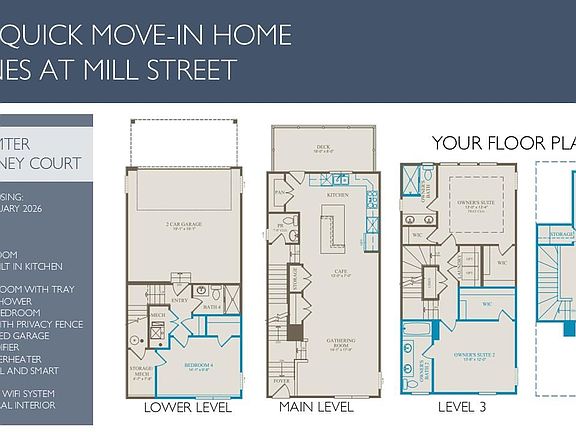 Quick Move In with December delivery. Welcome to the Sumter, a brand-new townhome designed to fit the way you live today. With 3 bedrooms, 3.5 baths, and 2,064 sq ft of space, there’s room for everyone to spread out. On the lower level, guests will love having their own bedroom and full bath—perfect for holidays, sleepovers, or visiting friends. Head upstairs to the main floor where the gathering room, dining cafe, and kitchen flow together for everyday living. The kitchen is a chef’s favorite, featuring a built-in microwave and oven plus a sleek 36” built-in gas range. Step out to the private balcony with privacy screen for morning coffee or evening downtime. Upstairs, the Owner’s Suite feels like a retreat with a tray ceiling, walk-in closet, and spa bath including tile floors and a frameless walk-in shower. Laundry is just down the hall—no more hauling baskets up and down stairs—and another bedroom with its own bath completes the level. Attached two-car garage keeps cars and storage secure. Best of all, you’re a short walk from downtown Plymouth and Old Village, with restaurants, shops, parks, and year-round events just outside your door.