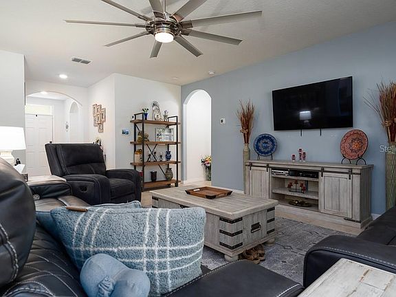 This immaculately kept 4/2/2 Cairn model Huntington Downs smart home built in 2019 with no rear neighbors sits on over ¼ acre and is just a short ride to Historic Downton Deland. Your inner chef will love this open plan kitchen that boasts a large island with beautiful granite countertops, 36" Shaker Style cabinets, gas range, stainless-steel appliances, a large pantry and an abundance of natural lighting. The main living area features large natural color ceramic tile and is open to the kitchen and dining area that flows gently to the covered 16 X 8 private rear lanai. The 16 X 13 owner's suite boasts a huge bath with comfort height dual sink vanity, large step-in shower, and a massive walk-in closet. Additional features include an energy efficient tankless hot water heater and dual pane windows, a fully irrigated yard, and an abundance of storage space throughout the home. The highly desirable Huntington Downs community features minimal restrictions and is practically across the street from Publix, shopping, various restaurants and is just a short hop to I-4, making Orlando and the beaches a breeze. Ask your Realtor® for the 360-degree virtual tour. All measurements are approximate and should be independently verified.