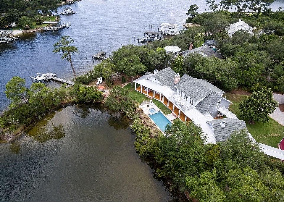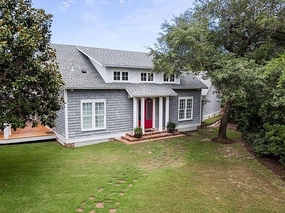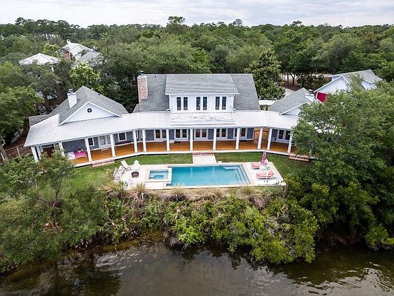 IMAGINE life on a 1.23 acre estate with over 400' of deep, protected waterfront with a private cove on the shores of Shirks Bayou! Well you don't have to imagine anymore because this one-of-a-kind property can be yours! This home was custom built in 2011 by Key Lime Construction. The 1.23 acre lot holds a main house (2750sf), a guest cottage (750sf) and an oversized garage with a carriage house above (700sf), all connected by a raised, covered breezeway in the front and a covered cypress deck along the back. The views of the pool and the private protected cove from the main house and guest cottage are unparalleled and can be enjoyed from almost every room. When you drive down the very private tree lined circular gravel driveway your breath will be taken away by this Southern Coastal home.