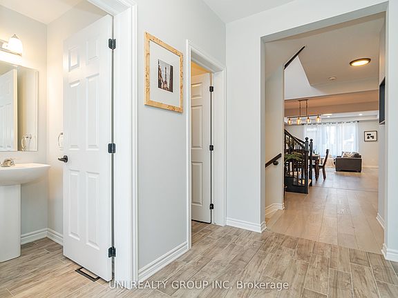 Welcome to 309 Proxima Terrace, a beautifully upgraded and move-in ready Mattamy Parkside model in the sought-after Half Moon Bay community of Barrhaven. This sun-filled 4+1 bedroom, 5 bathroom home with a fully finished basement is ideally located on a quiet street just steps from top-rated schools, parks, wetlands, trails, and transit. Showcasing 9-ft ceilings, engineered hardwood on the main level, and luxury finishes throughout, the open-concept layout includes a gourmet kitchen with quartz counters, extended ceiling-height cabinetry with molding, deep pot drawers, pull-out pantry, high-end stainless steel appliances, and a powerful 680 CFM range hood, flowing into a refined dining area and great room with tray ceilings, custom wall unit, tiled feature wall, and cozy gas fireplace. A private den/office, built-in mudroom, and discreet powder room add everyday function. Upstairs, 4 generous bedrooms all feature walk-in closets; the primary suite offers a spa-inspired ensuite with freestanding tub, glass shower, and double vanity, while a second bedroom has its own ensuite and the other two share a Jack & Jill bath. The second-floor laundry adds convenience. The finished basement includes a rec room, full bath, 24-hr water-resistant flooring, home theatre pre-wiring, and an extra office or gaming area. Extensive builder and custom upgrades include a solid wood spiral staircase, larger basement and ensuite windows, chandeliers, recessed smart lighting, UV water purification, tankless water heater, reconfigured plumbing for rapid hot water, widened driveway, landscaped yard with stamped concrete patio, 7-ft low-maintenance PVC fence, painted garage with concealed wiring, and custom décor elements like TV accent wall, foyer detail, and kitchen backsplash. Appliances (Bosch, Frigidaire, Whirlpool, LG) installed in 2021 remain in excellent condition. Some of the pictures are virtually staged, 24 hours irrevocable for all offers.
