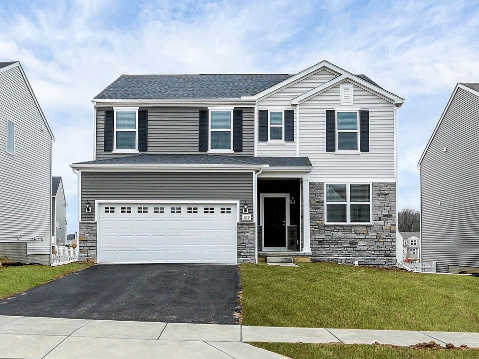 Welcome to 309 Raccoon Ave, Johnstown, OH. This Brand New Construction Home in the new Creekside Preserve subdivision is available For Rent and located just 2 miles away from the new Intel site in New Albany. The 2 story home boasts 2,265 sq ft above grade with 4 Bedrooms, 2.5 Bathrooms, 2 Car attached Garage, and a large unfinished basement. The entire 1st floor features luxury vinyl tile with a light oak finish; a beautiful modern open kitchen with center island eating space, granite tops, brand new SS appliances, and a gas stove range; garage entry open mud room; front entry office den, and half bath. The second level features the 4 bedrooms, 2 full bathrooms, and laundry room with washer and dryer included. The large primary suite has walk-in closet, and full bath en suite.