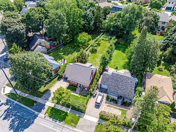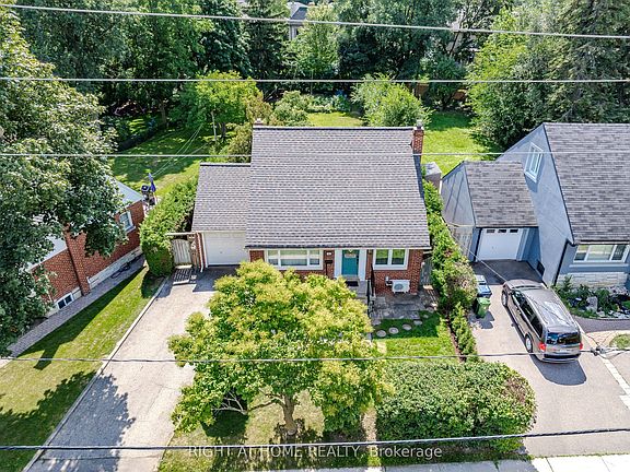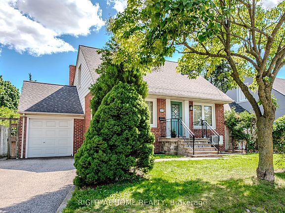 Welcome to 309 Rathburn Rd, situated in the highly sought-after Glen Park neighbourhood in prime Etobicoke. This charming and solid brick 1.5-storey detached home sits on a very impressive south-facing 10,450 sq. ft. lot, surrounded by mature, towering trees and lush landscaping, offering exceptional privacy. Step inside to a classic centre hall layout featuring bright, spacious principal rooms. The main floor includes a large living and dining area, large 4 piece washroom with Floor to Ceiling Porcelain Tile and an eat-in kitchen. Hardwood flooring throughout the main and upper levels. Meticulously cared for by the same family for 40 years, this home exudes pride of ownership. An inviting flagstone walkway and front entrance welcomes you, while a new cedar deck off the rear entrance provides the perfect outdoor space to enjoy views of a vibrant garden filled with colorful vegetables, herbs, and flowers. High-quality European tilt-and-turn windows are installed throughout the entire home. This versatile property is ideal for first-time buyers, growing families, or those looking to renovate or expand. The generous lot size and location offer endless possibilities. Additional features include an attached single garage and private driveway with parking for up to 5 vehicles, Two large Bedrooms on the Upper Level. The Lower Level has all above grade windows, a large rec room and dedicated Laundry Room with a double sink. Situated just minutes from top-rated/ranked schools, parks, trails, and all major amenities, with easy access to public transit and major highways. This home offers the perfect blend of privacy, potential, and convenience. This is a rare opportunity to acquire a detached home on a lot of this size in Etobicoke. Note: 3 photos digitally staged (kitchen, primary bedroom, rec room).