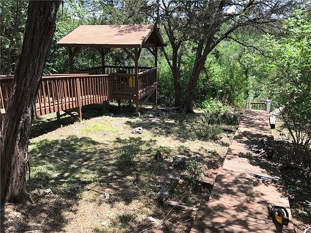 Beautiful view and access to the San Gabriel River from your back yard! Home has deeded access to the river and a multi level deck with 2nd gazebo overlooking the river and fishing/boat dock. Beautiful wainscoting and hard tile floors in the formal dining and kitchen, original hard wood floors in living room, new carpet in the bedrooms, updated bathrooms, windows and floor to ceiling pass through (living room to mstr bedroom) fire place are so charming.
