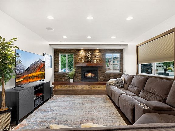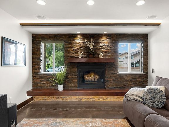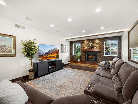 STUNNING upgraded home located in the highly sought-after community of Country Hills! This house features 5 bedrooms and 2.5 bathrooms with 2,455 square feet of spacious living space AND is within walking distance to Country Hills Elementary and Park. Spacious living room at the entry with beautiful stone fireplace, recessed lighting and plenty of natural lighting. Beautifully designed kitchen features custom cabinetry for storage, stainless steel appliances including built in refrigerator, Forno 8- burner range with double ovens, range hood and overlooks the dining room and living room which makes it great for entertaining. The dining room features a cozy fireplace with built-in book shelving and a custom coffee bar. Upstairs showcases SPACIOUS Primary Suite that includes a retreat area with built-in closets, desk area and sitting area with a two-way fireplace, access to the balcony, and a beautiful bathroom with dual sink vanity, spa tub with jets and reheating feature, and glass enclosed walk-in shower. Down the hall, there are FOUR additional bedrooms which offer plenty of closet space, and a beautiful hall bathroom with a glass enclosed walk-in shower. The laundry is currently in the 5th bedroom closet upstairs. The private backyard includes mature landscaping with multiple fruit trees, concrete patio area and a beautiful side patio off the kitchen which is perfect for your next BBQ. Additional features of the home include Solar for both electric and water heating AND HVAC system and appliances have been updated recently. This home also includes a LOW HOA and is located in the Award-Winning Brea Olinda Unified School District. Just a few minutes away from the Brea Mall, Birch Hills Golf Course, entertainment, restaurants, shopping and easy freeway access. This home is one you won’t want to miss!