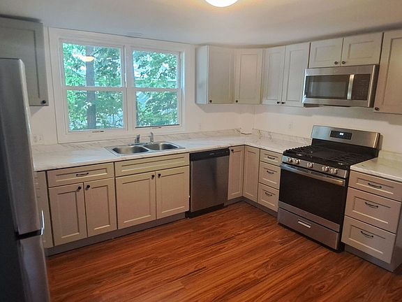 All new kitchens, bathrooms, flooring and more! 2 bedroom has 2 bathrooms with one ensuite. Washer and dryer also in unit. Driveway was recently re-paved and has enough room for 3-4 cars. Shared with apartment above. Porch at the side of the house for entertaining. Only a few minutes walk to downtown Ithaca and a short commute to Ithaca College. Tenants pay all gas and electric. $10 per tenant per month trash pick up fee. Can be furnished for additional charge. Tenants shovel own driveway. Property manager shovels sidewalk.