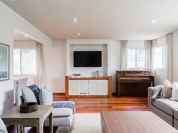 Interior: Designed with coastal touches in collaboration with a local designer. Comfortable living room with deep-seated couch and Smart TV.