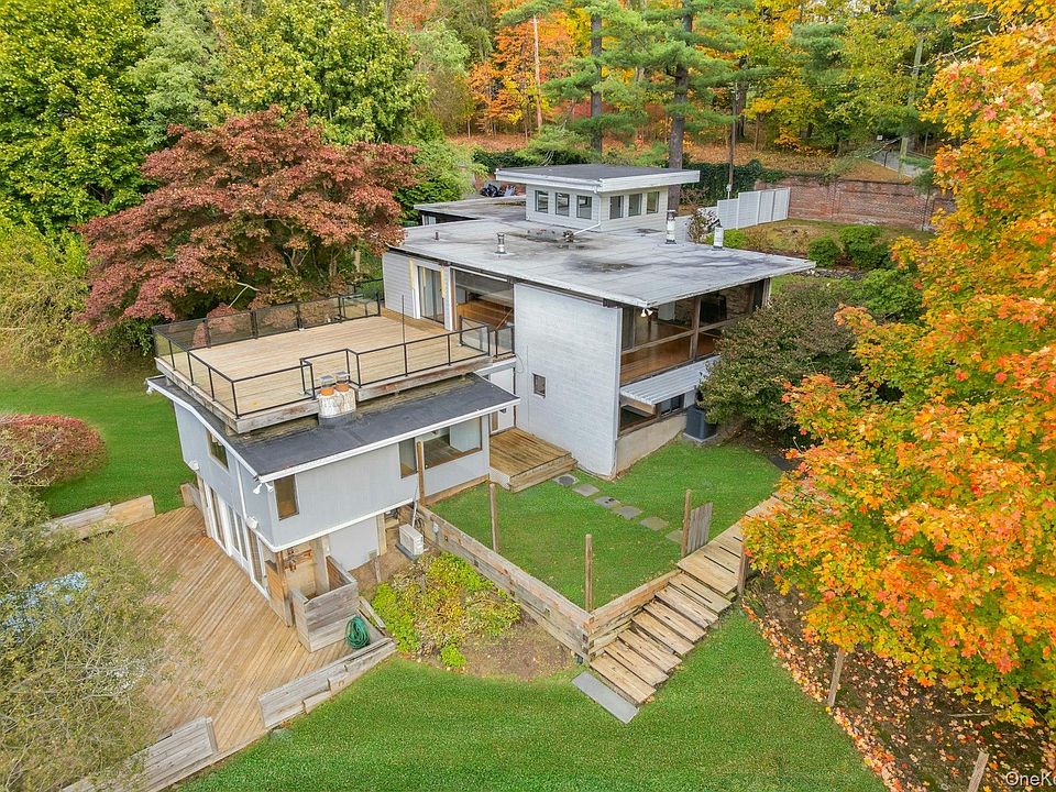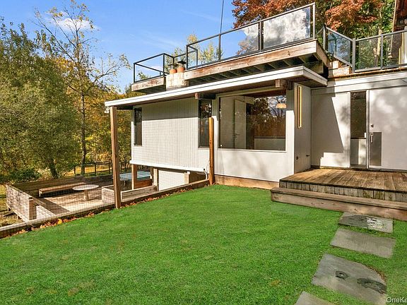 This unique, mid-century modern home blends timeless architecture with contemporary comfort. Clean lines, expansive windows, and natural materials create a seamless connection between indoor and outdoor living. The open-concept layout features vaulted ceilings, exposed beams, and an abundance of natural light that floods every room. A striking stone wall with fireplace anchors the living space, while sleek finishes and warm wood tones evoke classic mid-century charm. Step outside to an expansive 1.3 acre private property offering endless possibilities for entertaining and relaxing. Whether you’re hosting summer gatherings on multiple decks or simply taking in the serene landscape, this property perfectly captures the essence of modern living in a tranquil setting.Briarcliff Manor Recreation and access to nearby Scarborough Train Station commute along Hudson River to NYC. Just minutes to shops, restaurants and parks, hiking trails and top-tier golf courses.