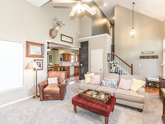 Beautiful home in Hills of Shannon! This home features newer carpet and paint throughout, living room with vaulted ceiling, front-facing windows and cozy fireplace, kitchen with hardwood floors and tons of cabinet space, dining area with access to deck. Master suite with raised ceiling, natural lighting, double vanity, spa-like jetted tub and standing shower. Full walk-out basement with deck and fenced-in backyard. Smithville AAA School District! Just minutes from Smithville Lake and Paradise Pointe Golf Course!