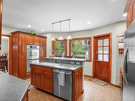 Quality built and meticulously kept! Prime location in a mature neighborhood! 1.75 Story Home with 4 Bedroom, 2 Baths. One has Becker Custom Cabinets & a oversized corner jacuzzi tub, double sinks, heated floor and a separate shower. 2 spacious bedrooms with built in desk and shelves plus a Den/TV room in dormer. Enjoy the comfort and style in the Livingroom with gas fireplace and open to Formal Dining room both with crown molding! Newer flooring and carpeting! Updated kitchen with Cherry Thomasville cabinets built in Stove top, double oven, microwave and Corian counter tops also has heated floors. Spotless unfinished lower level with Infrared Cedar sauna, workout area and other potential. Energy efficient vinyl windows and vinyl siding. Inground irrigation system. Attached Heated double garage. Backyard paver patio, garden shed. Same owners have enjoyed and taken care of this home for 26 years and now it can be your turn to relax & call this your home!