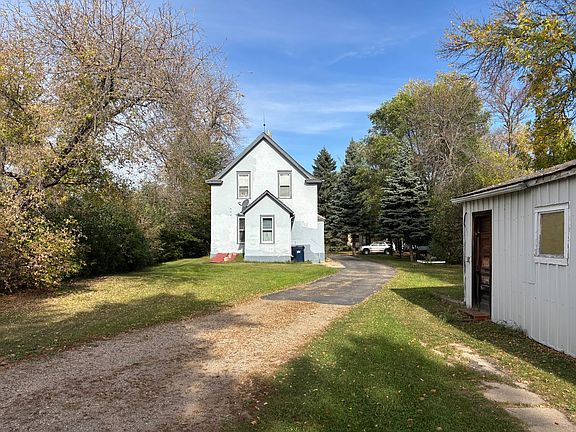 Affordable living meets small-town charm in this 2-bedroom, 1.5-bath home with potential for a 3rd bedroom. Offering 1,331 sq ft above ground plus a full unfinished basement, this property is a great opportunity for a first-time buyer, rental investment, or hunting/fishing retreat. Step inside to find a large eat-in kitchen, spacious dining room, and comfortable living room on the main floor. The enclosed front porch adds extra space for relaxing or storage. Upstairs, you'll find two bedrooms and a full bathroom, with room to convert for a 3rd bedroom if desired. Recent updates include a new electrical panel in 2024 and newer shingles, giving peace of mind for years to come. Outside, the property is surrounded by large mature trees for shade and privacy. A 1-stall detached garage, smoke house, and paved drive-through driveway from the street to the alley make this home convenient and functional. Enjoy the benefits of small-town living, just minutes from prime hunting and fishing opportunities.