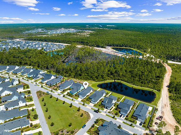 Prepare to be impressed by this charming residence nestled in the Watersound Origins neighborhood. Perfectly situated on a premium lot, this Huff-built home backs onto a tranquil pond and mature forest, providing ample privacy and tranquility. To the front, a two-car garage and covered front porch look out onto a peaceful neighborhood park. Step inside this pristine home and be greeted by the warm medallion wood flooring and other luxury details including solid core doors, a dry bar, upgraded tile, 10-foot ceilings and crown molding throughout. The open concept promotes social connectivity and a welcoming atmosphere, with ample space for entertaining. The heart of the home lies in the stylishly designed kitchen. High-quality stainless steel appliances include a French door refrigerator and a microwave drawer, keeping the sleek quartz countertops clear. Gather around the spacious island for breakfast or pre-dinner cocktails and discuss the day's activities. A separate dining table sits beneath an eye-catching light fixture. Just beyond the living room, a door leads out to the screened lanai where you can relax with a book or spot wading birds. This inviting home features four bedrooms and three full bathrooms, providing ample space for comfortable living all on one level. Escape to the spacious master suite with ensuite bath, a serene retreat overlooking the pond and wildlife. The additional bedrooms are versatile, offering flexibility for families, guests or for use as a home office.
