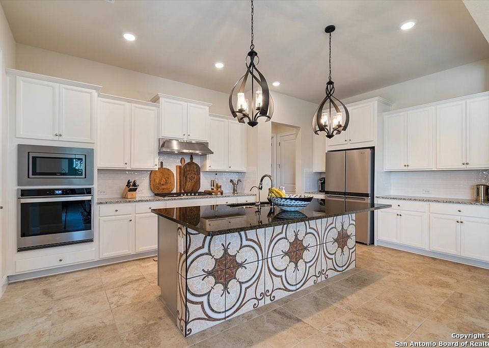 Custom mobile outdoor cookingUpgraded tile flooringOversized granite islandCorner lotMagnatrack screensRefreshing breezesGourmet kitchen