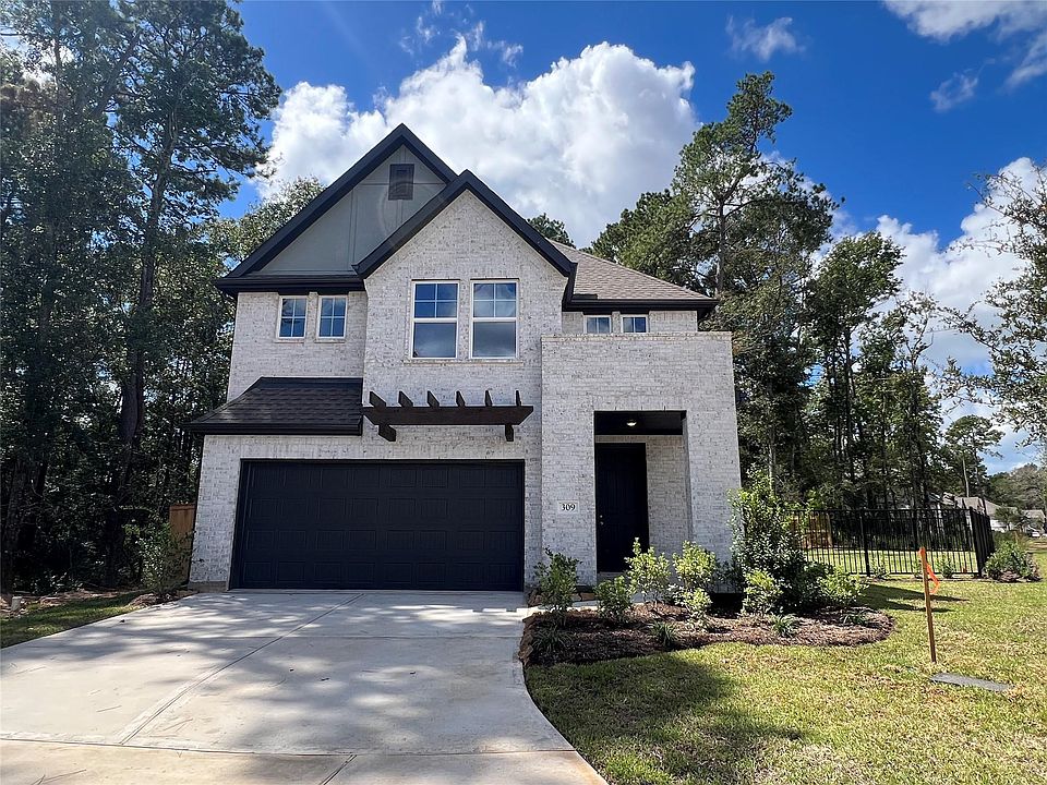 Come home to The Woodlands Hills, a serene master-planned community in Willis, TX, where nature meets modern living! With over 20 parks, scenic trails, a resort-style pool, and a strong sense of community, it's the perfect place for families to enjoy outdoor activities and make lasting memories, all while being close to Lake Conroe and top-rated schools. This stunning NEW construction Wayfinder plan features 4 bedrooms & 3.5 baths, located on an OVERSIZED cul-de-sac lot. The kitchen has gorgeous custom cabinets & sleek omega stone countertops. You will find laminate flooring in the main living areas and tile in the wet areas. Fall in love with the primary bedroom's MUST-SEE walk-in closet and spacious walk-in shower with a shower seat! Enjoy your backyard oasis, featuring full sod, a sprinkler system & a covered patio. Home is under construction and will be ready October 2025!