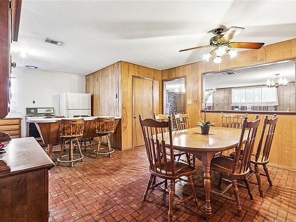 Welcome to this well-maintained 4-bedroom, 2-bath home offering 1,722 sq ft of living space and timeless charm in a quiet, established neighborhood. The inviting brick exterior, manicured landscaping, and covered carport create beautiful curb appeal. Inside, you’ll find multiple living and dining areas filled with natural light, including a cozy den with a full brick fireplace and a large kitchen with plenty of cabinets, countertop space, and a breakfast bar.