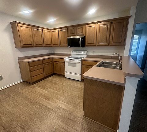 FREE parking and pet rent!! Beautiful 2/2, 970 sf., with covered parking, new wood-look floor, fresh paint on entire unit, new fixtures and hardware. 1/2 mile south of downtown Weatherford, off of Main St. Utility room with washer/dryer connections and gas fireplace. Lovely, quiet, gated townhome complex with shared yard. Very close to main street with dining and shopping. Convenient location close to schools, etc.