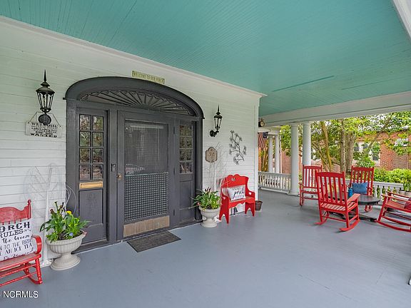 The Mary Blades Foreman House was built in 1912. Monumental Tuscan columns support a two story porch with wrap around porch on the west elevation, including a port cochere. The parquetry floors are 3 different patterns. Spacious rooms throughout the over 4,000 sq. ft. of living area. Handsome entry fireplace and Adamesque on front parlor mantel. Many original built-ins. A handsome one -and-a-half story 3 Bay Garage with fenced back yard.