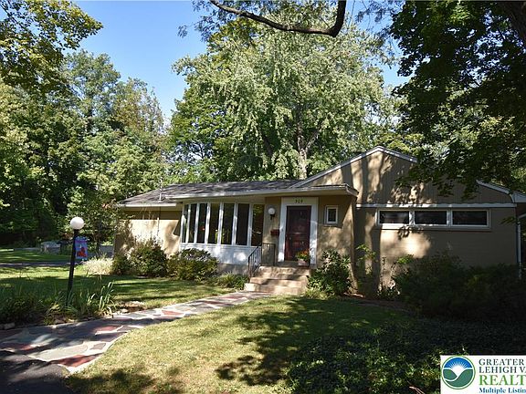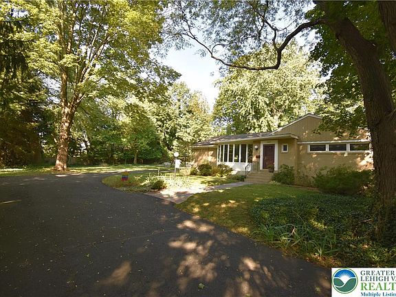 Desirable College Hill Mid-Century Modern Ranch Home situated on 0.63 acres of private land, this mid-century modern ranch offers a spacious and open-concept design. The expansive living room features a stunning bay window with seven full-length windows and a four-panel atrium door, filling the space with natural light. A gas fireplace and a small serving bar add to the inviting atmosphere. The living room seamlessly transitions into the large dining area, which also boasts a wall of windows and opens to a modern kitchen equipped with granite countertops and a center island—perfect for entertaining. Every room provides views of the lush, landscaped yard, creating a serene and scenic backdrop. Additional highlights include a family room with a stone, wood-burning fireplace and recently refinished hardwood floors in the living and dining areas. Located in a private, wooded setting, this home offers tranquility while still providing convenient access to downtown and Lafayette College. 2 car garage.