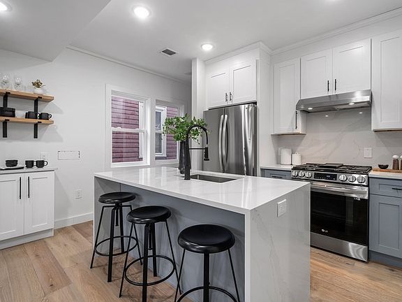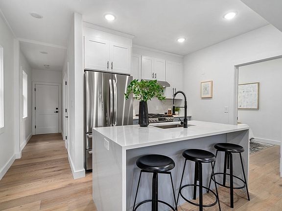 Nestled in a vibrant residential pocket of Union Square, this beautifully restored home features 3 bedrooms and 2 bathrooms with custom designs throughout. The open-concept floor plan seamlessly blends the sophisticated two-toned shaker cabinets, designer black fixtures, and quartz countertops in the kitchen with the sleek bath and two bright guest bedrooms in the main living area. The upper level boasts a master suite with a modern en-suite bath and an office. Enjoy the spacious private deck off the master or the enclosed patio in the rear of the home. This inviting space is complete with off-street parking, hardwood floors, central heating and cooling, in-unit washer/dryer hook-ups, and extra storage. Thoughtfully designed for both functionality and quality, this home is a remarkable opportunity to live in one of Somerville's most desirable neighborhoods, just moments away from local favorites and the Green Line.