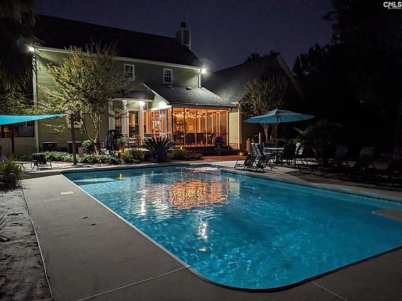 This charming custom built Charleston style home has 4 bedrooms, 2 full baths and 2 half baths and is ready for its new owners! It features custom built cabinets in the spacious eat in kitchen, a fireplace with gas logs in the family room, a separate living room that could be used as an office, a very large primary bedroom with a door that leads to the second floor balcony, an updated bath with double sinks, an oversized soaker tub and a walk in closet. It's nestled on approx. 1/2 acre and is conveniently located just minutes from downtown Columbia or downtown Lexington, and zoned for the award winning River Bluff HS! This home has been very well taken care of and has had new flooring replaced downstairs, 12 new windows, water heater replaced in 2023, all bathrooms have been nicely updated, and HVAC units are less than 3 years old. The home also features full gutters with leaf guards and front irrigation. The 4th BR is over the detached garage and features its own half bath and brand new mini split HVAC. The backyard is a private oasis with a 16x32 foot saltwater pool, covered screened in porch and a beach area! The pool pump/ salt water chlorinator was replaced in 2024. There is a well for water, so NO water bill, and septic tank which was pumped out Spring 2024. There are mature trees and partial fencing in the backyard. No HOA!!!