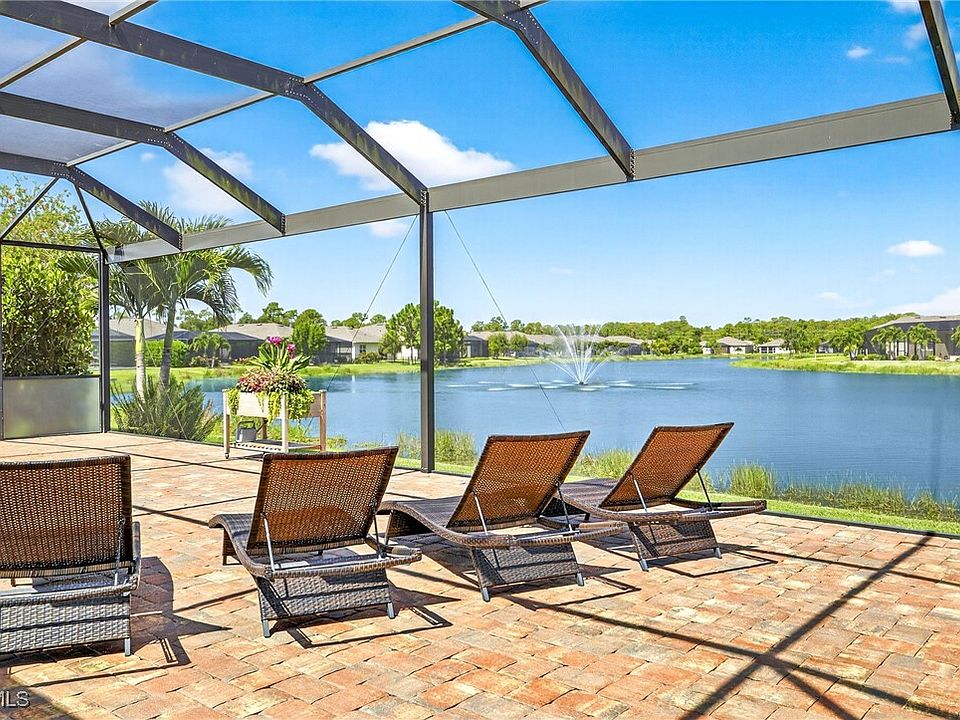 Step outside to your private oasis: a large extended paver lanai with atrium picture screen, tranquil lake and fountain views, and your very own hot tub—perfect for entertaining or peaceful evenings under the stars.