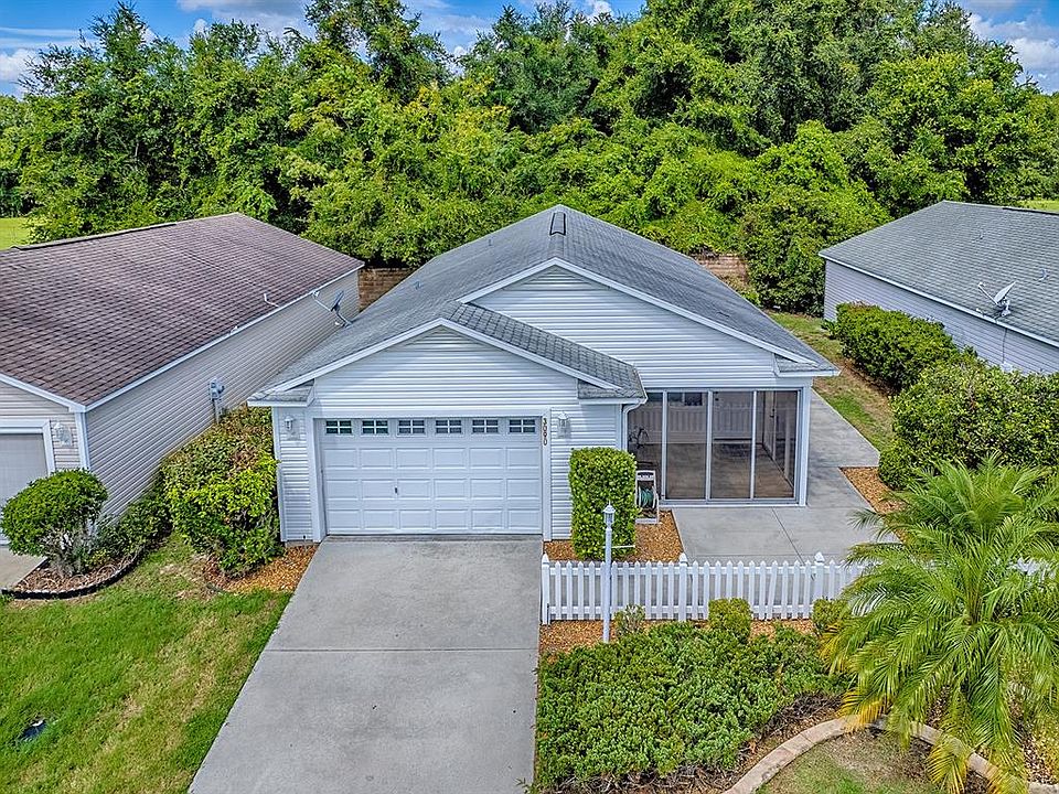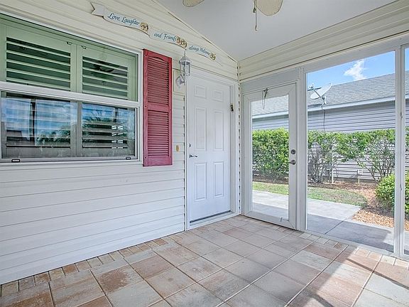 Imagine waking up each morning in a place where tranquility and community living blend seamlessly. Welcome to your new home—a beautiful 2-bedroom, 2-bath patio villa in the Village of Pinellas. With a prime location backing up to a serene stone wall, this property promises unparalleled privacy and a peaceful atmosphere, yet it remains close to the vibrant life you've come to expect from an active adult community. As you approach the villa, you'll immediately notice the thoughtful landscaping that greets you—a harmonious arrangement of mature plants and edged rock beds that offer a welcoming first impression. It's enclosed front lanai with its brick/stone flooring really draws you in, inviting you to sit, relax, and enjoy the gentle Florida breezes. Come inside to find new luxury vinyl plank flooring that stretches across the entire home, providing a foundation of warmth and elegance. The vaulted ceilings heighten the sense of space, while the plantation shutters add a touch of sophistication, allowing you to easily control the natural light that flows generously through each room. The open kitchen is designed for both convenience and style, featuring white cabinets and ample counter space that make meal preparation a pleasure. The pantry is a practical touch, providing room to keep your kitchen essentials neatly stored away. For added function the adjacent dining area is perfectly situated for casual breakfasts or dinner parties with friends. The villa’s living room offers more than just a living space; it enhances that feeling of openness, while the central ceiling fan ensures comfort year-round. This space is ideal for everything from quiet evenings to entertaining guests. Each room flows naturally into the next, creating a cohesive living space that meets every need. The bedrooms continue this theme of relaxed elegance. Each bedroom is a private retreat, complete with generous closet space. Both bathrooms offer contemporary fixtures and finishes. What truly sets this property apart is its location within The Villages—a renowned 55-plus community that redefines active adult living. Known for its abundance of amenities, The Villages offers something for everyone. Whether you're interested in golfing, recreational clubs, or simply exploring the sprawling network of walking paths and nature trails, you'll find endless opportunities to engage and unwind. Convenience is another key advantage of this villa. It's situated just a short drive from 466A, where you’ll find a wide range of shopping, dining, and healthcare services. It means you'll never have to venture far to satisfy your daily needs. This villa is more than just a property; it’s a lifestyle choice that promises comfort, community, and convenience. Whether you’re retiring, investing, or looking for a seasonal retreat, embrace the opportunity to own a piece of paradise in a community designed for those who appreciate the finer things in life. Ready to see it for yourself?