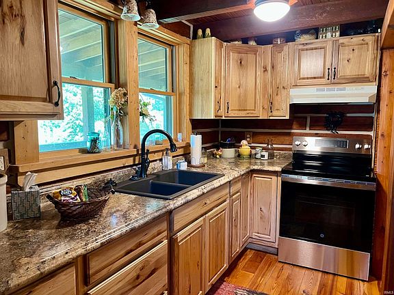 Escape the hustle and bustle and find your tranquil retreat at 3090 Shamrock Lane in Birdseye, Indiana. This charming log cabin, constructed in 2000 and expanded in 2019, offers a perfect blend of rustic allure and modern convenience, all just minutes away from Patoka Lake, local wineries, and breweries. Imagine relaxing on your wrap-around covered porch, surrounded by the sights and sounds of nature-whether it's bird songs or moonlit nights, this space promises peaceful moments. The cabin spans 2367 square feet and is ideal for weekend getaways or full-time country living. Step inside and be greeted by stunning hardwood floors, solid 7" timbers, and an abundance of new Anderson windows framing beautiful views of the surrounding wildlife. The spacious kitchen was completely remodeled, with its ample cabinets and counter space, includes a new refrigerator and range/oven. It opens to a 19 x 10 dining area, perfect for entertaining. On the main floor, you'll find a 14 x 12 bedroom with an en-suite bathroom featuring a walk-in shower. The 30 x 12 family room boasts a wood-burning stove and plenty of natural light, while a 13 x 11 space offers options for a game room or additional sitting area. Upstairs, two loft areas await: a 12 x 16 space ideal for two beds and a 30 x 23 loft with a built-in bed, multiple cove areas for extra beds, and space for recreation or games. The loft also provides a stunning view of the cabin's addition. Outside, a 24 x 30 outbuilding with an eagles roost deck connects to a 15 x 15 remodeled area (not included in square footage of house). This versatile space could serve as a guest area, office, or den. The outbuilding is also perfect for storing vehicles, boats, ATVs, or other recreational gear. Nestled on three lots, this property offers breathtaking views, ample trees, and the ultimate escape from city life. The spacious driveway accommodates extra room for a boat, pontoon and/or extra parking, making this cabin a must-see for anyone seeking a serene retreat. Pictures and descriptions can't fully capture its charm-come see it for yourself! Included in sale: Refrigerator (2025), Range/Oven, Washer/Dryer Combo (2025), Window Treatments, Heat Pump (July 2025)