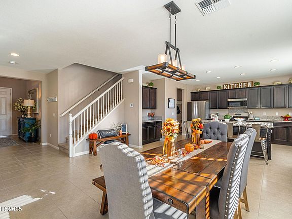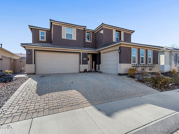Meticulously maintained 4 bed, 3.5 bath gem in desirable Saddle Ridge! Beautiful open design features a Large chef's kitchen adjoining the great room- perfect for family time or entertaining. Downstairs you will also find a bedroom and full bath. Upstairs you'll find a loft/secondary living room and 3 more spacious bedrooms including the primary featuring double walk in closets and a private balcony with gorgeous views of the mountains. Indoor/outdoor living with a covered patio that can be an outdoor living/dining area. Amazing amenities at community fitness center including hot tub and pool. Security gated. Close to schools and shopping, easy access to freeways to Tahoe, Carson City. Come check this one out today!