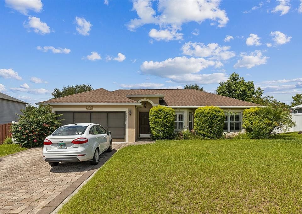 Short Sale. QUICK MOVE-IN & ready to close! Discover a fantastic opportunity in the tranquil area of Deltona Lakes! This beautifully maintained single-family home offers 4 bedrooms, 2 full baths, and an immaculate interior that is sure to impress. The open, flow-through layout features vaulted ceilings, stunning bay windows in the formal living room, and tile flooring throughout. The spacious owner's suite is a retreat with a cozy bathroom and his-and-hers closets, including a large walk-in. The kitchen is a chef's delight with granite countertops, stainless steel appliances, and a brand new over-the-range microwave. A washer and dryer are also included for your convenience. Step outside to an oasis of peace and relaxation in the meticulously cared-for backyard, complete with a screened-in porch, newly resurfaced in-ground pool, fruit trees, and plenty of outdoor living space, all within the privacy of a fenced-in yard. The 2-car attached garage offers sliding screen doors to allow the breeze in while keeping bugs out. This home has been lovingly maintained and upgraded with plantation shutters throughout, an upgraded second bath, solar water heater, paver driveway and back porch (added in 2020), an in-wall pest control system, a 2020 AC unit, a 2021 water heater, and a roof installed in 2016.