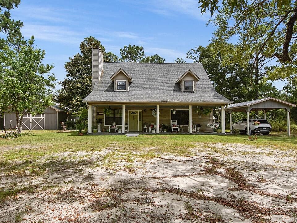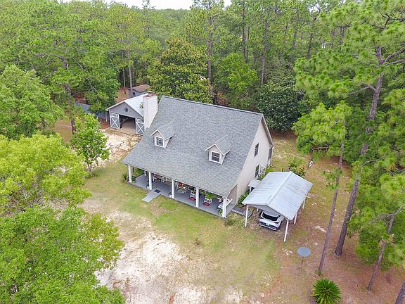 This stunning 2-story country home is located in the gated Leisure Lakes Community which offers many amenities to include, fishing, tennis courts, basketball court, playground, pavilion, picnic areas, BBQ's, boat ramp, equestrian trails, and swimming pool. Panama City and Panama City Beach are just a short drive away to enjoy the sugar sand beaches, shopping, and fine dining. Driving up to this home you will notice the beautiful trees and greenery surrounding the very large front porch. Walking inside you are welcomed with cathedral ceilings in the open concept living room and kitchen. The wood floors compliment the woodwork throughout the house and the unique mantel for the fireplace. Plenty of space in the kitchen area with a large pantry cabinet and space for a breakfast nook. Laundry room is located off the kitchen with access to the back door. Second and third bedroom are down the hall from the living room with the guest bathroom. Large master bedroom is upstairs beside the loft area, which could easily be converted to a fourth bedroom, if needed. This home has no wasted space, there is ample storage. The attic area is accessible through the master closet, master bedroom, loft living space, and the front porch. Stepping to the back porch you will find a screened-in outdoor jetted tub retreat to relax and unwind while enjoying the outdoors. Shaded backyard has a fenced in area for your pets. A sizable shop is located just beside the home with double barn doors on each end for your vehicle or yard equipment to be fully enclosed while stored. Covered parking for one to the opposite side of the home. The 2-story barn has plenty of space to park your boats or tractors with a large enclosed second story that could be turned into a craft room or man cave. The barn and shop have electric. Come see this great community and charming home!