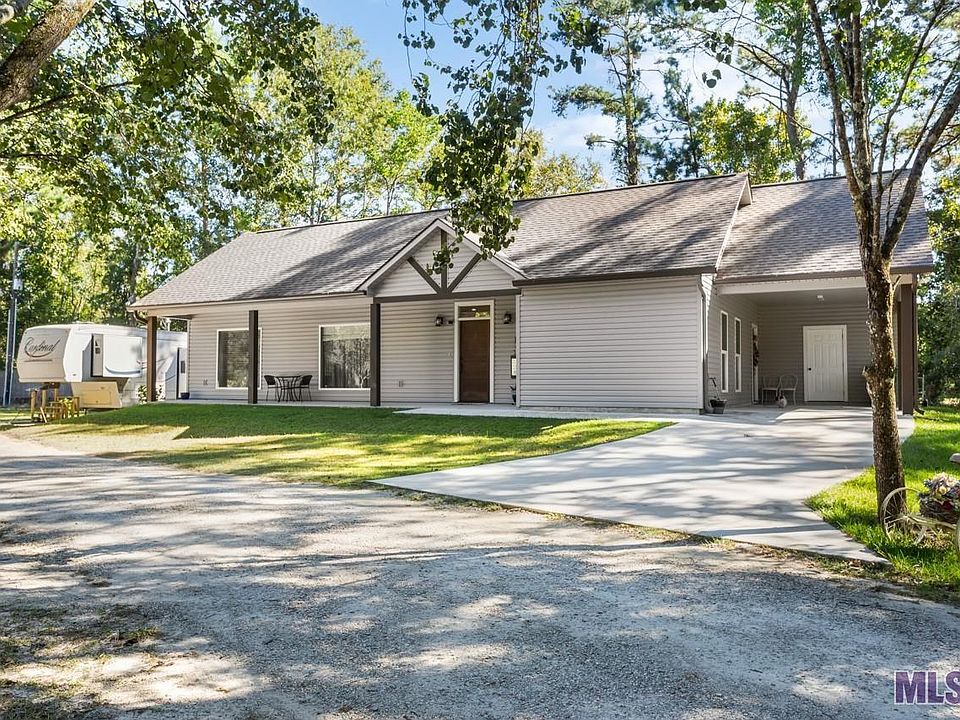 Welcome to your new custom-built home that offers country living while being minutes from the interstate, shopping, & restaurants! As you enter this beautiful 2 bedroom, 2 bath home, you'll immediately be struck by the attention to detail and high-end finishes throughout. The open floor plan is perfect for entertaining and everyday living, with a spacious living room featuring a shiplap accent wall that adds a rustic charm. The kitchen is a chef's dream, with granite countertops, subway tile backsplash, and an upgraded porcelain farmhouse sink. The gas stove includes air fryer convection making cooking a breeze! There is ample counter space is perfect for cooking. The vinyl flooring throughout the home is both durable and stylish. The bedrooms are generously sized, with huge walk-in closets to provide plenty of storage space. The master bedroom features a large walk-in shower that attaches to an oversized laundry room. The guest bedroom is equally as spacious, features a walk-in closet, and shower tub combo. The home is wired for a generator. The front porch is the icing on the cake, with a pond view that can be enjoyed from the comfort of your rocking chair. This new home is the perfect blend of style and functionality, providing a beautiful and comfortable space for you to call home. Don't wait, schedule a showing today and see for yourself why this is the perfect home for you!