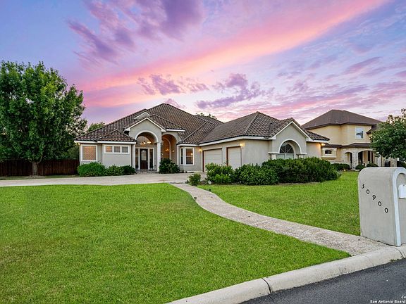 5 BEDROOMS* 3528 sqft.* LARGE .62 ACRE CORNER LOT* GORGEOUS POOL* 3-CAR GARAGE IN FAIR OAKS RANCH! Nestled on a spacious .62-acre corner lot in the beautiful golf-course community of Fair Oaks Ranch, this stunning Mediterranean-style custom home offers timeless elegance and exceptional comfort. Boasting 5 bedrooms, 3 1/2 bathrooms, and a three-car garage, the home features a thoughtfully designed open floor plan perfect for everyday living and entertaining. The heart of the home is a chef's kitchen which opens to a breakfast nook and a cozy living room that has access out to the pool. Three of the bedrooms are located on the main floor and the other two bedrooms are upstairs. The primary suite, conveniently located on the main floor, includes a spa-like bath with dual vanities, a soaking tub, and two large walk-in closets plus access out to the pool. Outdoors, enjoy a park-like backyard complete with a large covered patio and a sparkling pool, ideal for gathering year-round. Located in a prime location feeding into top-rated Boerne schools, this home offers luxury, space, and convenience in one of the Hill Country's most sought-after communities.