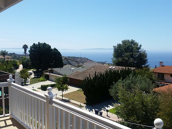 Located near Point Vicente Elementary School on a private street, this recently remodeled two-level home presents breathtaking expansive Catalina, Malibu and ocean views on both the main floor and the bedroom levels. The main floor features a spacious living room with a brick fireplace, an upgraded kitchen with stainless appliances, and both living room and family room that connect to a great ocean-view deck offering the best of indoor-outdoor living. The master suite and the other four bedrooms are located on the lower level of the home, with three of the bedrooms opening each morning to fabulous views right through the sliding glass doors. A separate spacious laundry room that can be outfitted with gym equipment is located on the bedroom level that opens to the garden patio. An additional finished basement consisting of approximately 505 square feet is situated on the lower level, offering more family entertainment space and a separate entrance to the home. Total living space is 3065 square feet.