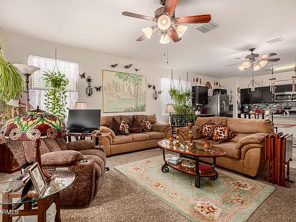 Amazing 4 bedroom, 2 bath home ready for you! This property comes fully stocked with everything from bedroom sets, TVs with wall mounts, stainless steel refrigerator, upright and chest freezers, high-capacity LG washer and dryer, even dishes, pots, and pans. Truly move-in ready. The home features an owned solar system with an assumable loan through GoodLeap, keeping energy costs impressively low, most months the seller even receives a credit from APS. Spacious backyard plus neighborhood amenities including parks, biking, and walking paths make this a comfortable place to settle in. Whether you're a first-time buyer or looking for a second or investment home, this property fits the bill.