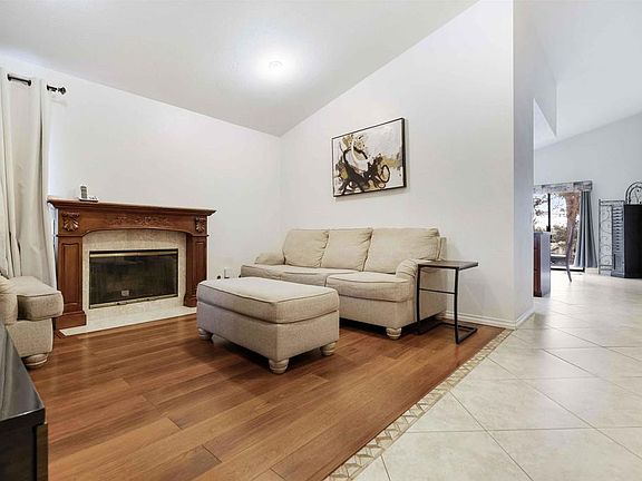VA/FHA WELCOME! Single-story detached single-family 3-bedroom, 2-bath home with a 2-car garage. Entry living space room with vaulted ceiling and cozy fireplace, open kitchen to dining/family room with large island and granite countertops throughout. Sliding doors lead out to a spacious backyard with ample side yards for entertaining or storing. This home is perched higher than the rear neighboring community, adding additional privacy. The primary bedroom features an en-suite full bathroom, as well as two other bedrooms and a hallway full bathroom. Central heat and AC unit for comfort all year long. Located in a small planned community with greenbelts and community park areas. Conveniently located near schools, shopping, and easy freeway access! This is an ideal starter home or a condominium move-up!