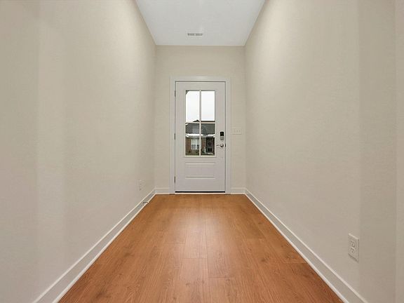 This ranch-style home offers a spacious open-concept design, ideal for everyday living and entertaining. The kitchen features a large island, a walk-in pantry, ample cabinet space, and an expanded dining area that seamlessly connects to the expansive family room, filled with natural light. The kitchen includes granite countertops, a tile backsplash, and a stainless steel appliance package with a gas range. The private owner’s suite includes an ensuite bath with a double bowl vanity, a ceramic shower, and an oversized walk-in closet, providing a peaceful retreat. Two secondary bedrooms, each with walk-in closets, are conveniently located near the owner’s suite, a generous second bathroom, and a well-placed laundry room. RevWood Select Granbury Oak flooring is throughout the main living areas and ceramic tile is installed in the wet areas. Jagoe TechSmart components are included. You’ll love this EnergySmart home!