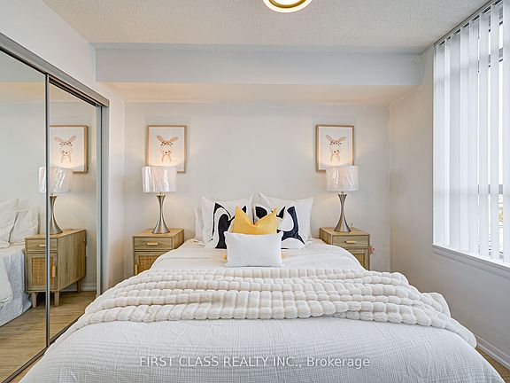 Luxurious Treviso Condo with 2 Beds + 2 Baths & A Large Terrace With Unobstructed View Of The Park. Newly renovation with new flooring & painting. Open concept, spacious & sun filled corner unit. Close to all amenties, walk To Lawrence West Subway, Ttc, Supermarkets, yorkdale Mall, Lawrence Square, Costco. Easy access to hwy 401. it's xcellent conditon & quiet unit. Don't miss it!