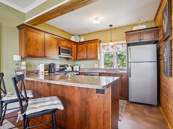 There is an accepted offer, with contingencies - continuing to show. Perched on the top of the hill, surrounded by timber, sits this well managed 57 acre +/- property ready for a family, outdoor enthusiasts or investors! Currently operated as a vacation rental, this property offers multiple opportunities for enjoyment. The diligent care this home has received truly shows! This beautifully maintained 3 bedroom, 2 bath home combines modern comforts with original charm. The updated kitchen offers all the amenities: stainless steel appliances, island seating and plenty of counter space. The tall ceilings, windows and original hardwood floors throughout, keep this home grounded in it's historic glory! The living room is the place to gather for games and relaxation and the office/den gives you an extra space to read or write. The dining room leads upstairs to the bedrooms and full bath. The main floor laundry is a plus and the 1/2 bath is conveniently located just inside the entrance door! Outside, the oversized 2-car garage provides space for your storage needs. This secluded location ensures peace and quiet, room to trail ride, hunt or enjoy all that nature has to offer. Don't miss out on this rare opportunity to own a piece of rural paradise! Call today to make this exceptional property your own!