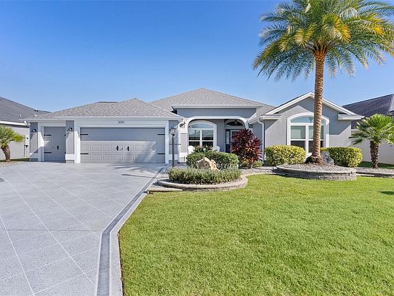 EXPANDED GARDENIA DESIGNER HOME with GOLF CAR GARAGE, LAKEFRONT VIEW AND HEATED SALTWATER POOL – VILLAGE of PINE RIDGE Welcome to this stunning EXPANDED GARDENIA Home, built in 2016 and thoughtfully enlarged to 2,070 sq. ft. of beautifully finished living space. Perfectly located in the desirable Village of Pine Ridge, this residence blends comfort, elegant design, and serene lake views into one exceptional property. Home Sold Partially Furnished From the moment you arrive, the UPGRADED LANDSCAPING, SMARTLY PAINTED DRIVEWAY and ENTRY, and Inviting Front Sitting Area create undeniable curb appeal. The clean BLOCK AND STUCCO exterior offers timeless charm and low-maintenance durability. Step inside to find ceramic tile laid diagonally throughout the main living areas, rounded drywall corners, and exquisite CROWN MOLDING, picture-frame, and chair-rail trim. The open floor plan highlights custom architectural columns that define the dining room, vaulted ceilings throughout, and a tray ceiling in the primary suite for added dimension and style. The chef’s kitchen showcases gleaming QUARTZ COUNTERS, STEPPED CABINETS, STAINLESS STEEL appliances, and an upgraded GLASS TILE BACKSPLASH—perfect for both cooking and entertaining. Each Bedroom has Carpeted Flooring and Ample Closet Space. The Primary Bedroom also features TRAY CEILING and for Additional Comfort a Mini-Split AC Unit. Dual Sinks and A Roman Walk-In Shower. Two Walk-In Closets, So No Sharing ! Both Guest Bedrooms Both bathrooms feature QUARTZ COUNTERS, with a ROMAN SHOWER in the primary Bath and a WALK-IN SHOWER in the Guest Bath. Comfort and practicality shine through with a MINI-SPLIT A/C system in the primary bedroom, ceiling fans in all bedrooms, and ample storage cabinetry in the laundry room. The garage accommodates two cars plus two golf cars, and features insulated doors, painted floor, pull-down Attic Stairs, and built-in Extra Storage Cabinets. Step outside to your own private oasis — an Expansive Saltwater Pool with SOLAR AND PROPANE HEATING, WATERFALL feature, multiple seating areas, and dedicated tanning and grilling zones. The EXPANDED NEWLY RE-COVERED SCREENED LANAI includes a mounted TV and Remote-Controlled Awning, Custom CEILING and Painting, creating an ideal setting for year-round Florida living. From this space, take in the unique and tranquil lake view, a perfect backdrop for gathering with family and friends for years to come. Additional Features are, Water Softener 2024, Interior and Garage Painted 2025, Exterior Drive, Patio and Walkways Power Washed 2025, Roof Pressure Washed 2025, Birdcage Rescreened and Painted 2025, Pool Deck Repainted 2025, Lanai Custom Ceiling Installed 2025, Murals Painted 2019 and 2014, Remote Controlled Lanai Awning 2021. Front Lawn Re sodded 2025. Attic Flooring with Taller Ceiling for Attic Storage and Convenience. Radiant Barrier, Insulated Garage Doors with Power Screen. This immaculate home truly has it all — luxury finishes, smart upgrades, and an unbeatable location, golf, recreation, shopping, and dining in The Villages. Nearby you'll find The Okeechobee Golf Course and the Seminole and Escambia Golf Courses, The Moyer Recreation Center, The Pine Ridge Eagle Preserve, The Sharon Rose Wiechens Preserve, The Pine Ridge Neighborhood Rec. Center. Also The Colony Plaza and Sarasota Shopping Centers. Take a few minutes to look over the Pictures and Video of this HOME and Schedule a Private Showing. Thank you.