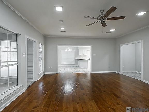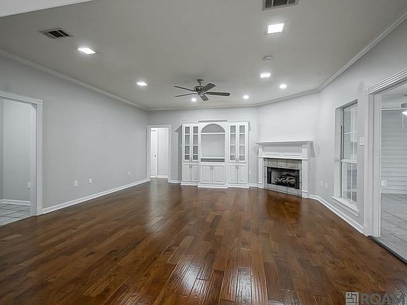 Never Flooded! This freshly painted home offers slab granite counter tops in the kitchen with new stainless appliances and a large snack bar. The spacious living room has a new fan, fresh bright recessed lighting, a ventless gas fireplace with gas logs, built-in cabinetry and laminate wood flooring. The sunroom is a great space for additional seating, a piano room, or an exercise room – many options for the new homeowners needs. The office offers a closet and built-in cabinets – could double as a small nursery or a playroom. New fans in all the bedrooms. The primary ensuite offers a large soaking tub, separate shower, linen cabinet, dual sinks, dual closets and a water closet. The large covered patio is a delight to enjoy the morning sunrise or evening sunset. The outside utility room – doubles as a workshop and offers a ½ bath. The enclosed storage behind the home is great for lawn equipment, outdoor toys for adults or kids, and a lot of storage space for gardening tools. The home is situated on .48 acre ( almost half an acre) and as per LSU ag center is in Flood Zone X. *Structure square footage nor lot dimensions warranted by Realtor.